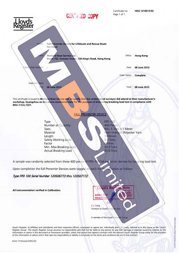 Marland Boat Service Ltd/ Hong Kong SAR, China, are specialized in servicing of lifeboats & davits, in compliance to the regulation MSC 1/Cir 1206 SOLAS Chapter III,